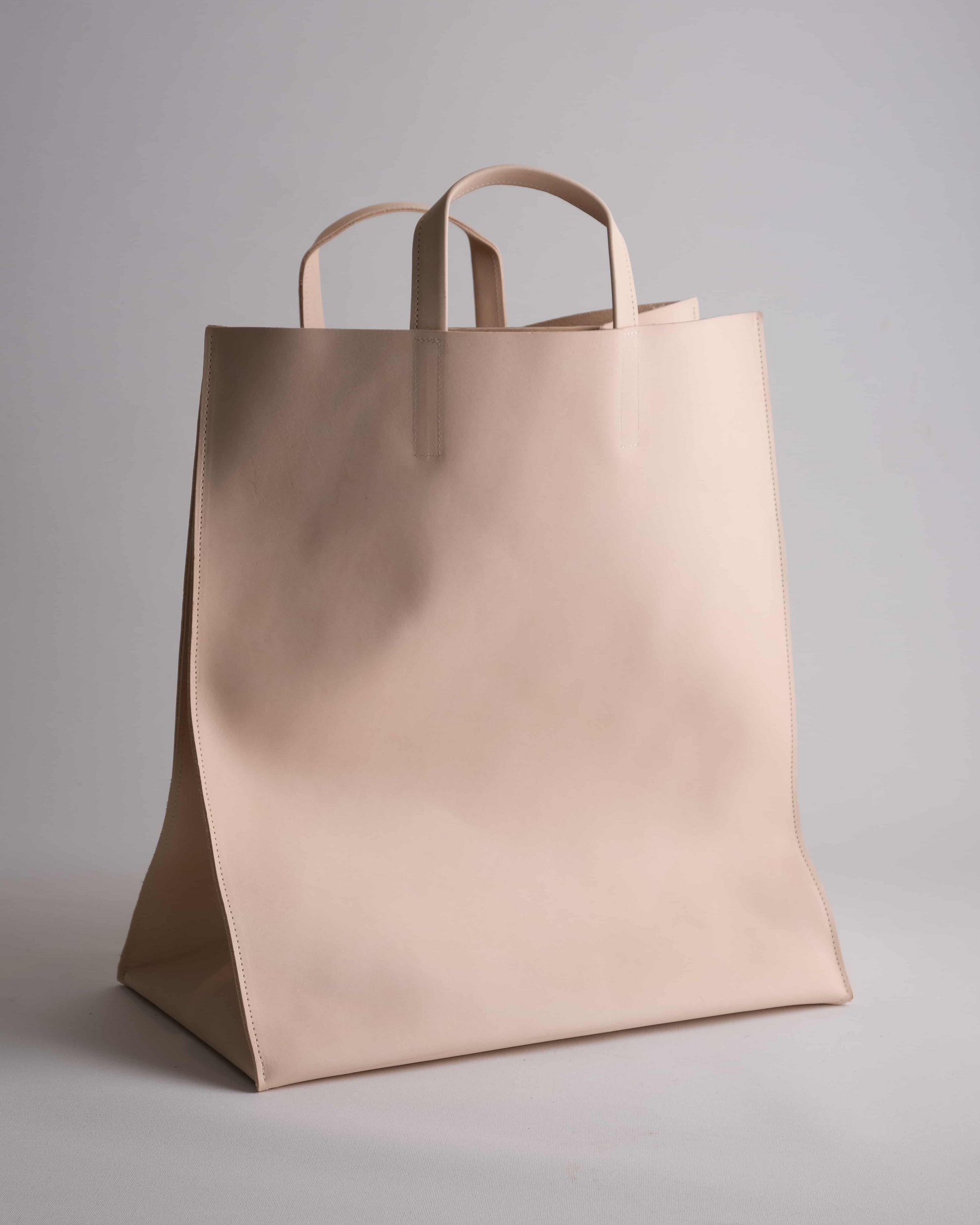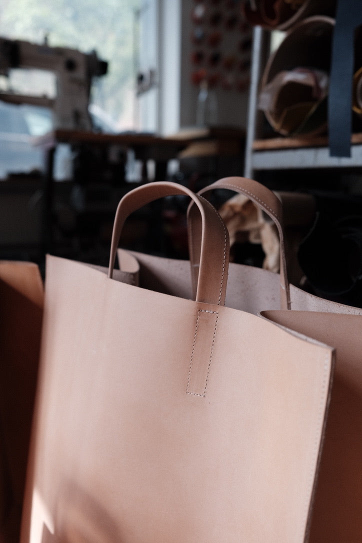 Vår Kooperativet väska är tillverkad i Sverige av vegetabilgarvat, ofärgat läder som åldras vackert och utvecklar en unik patina med tiden. Den är designad för att efterlikna den klassiska papperskassen i storlek och funktion, men med en hållbar och tidlös twist.