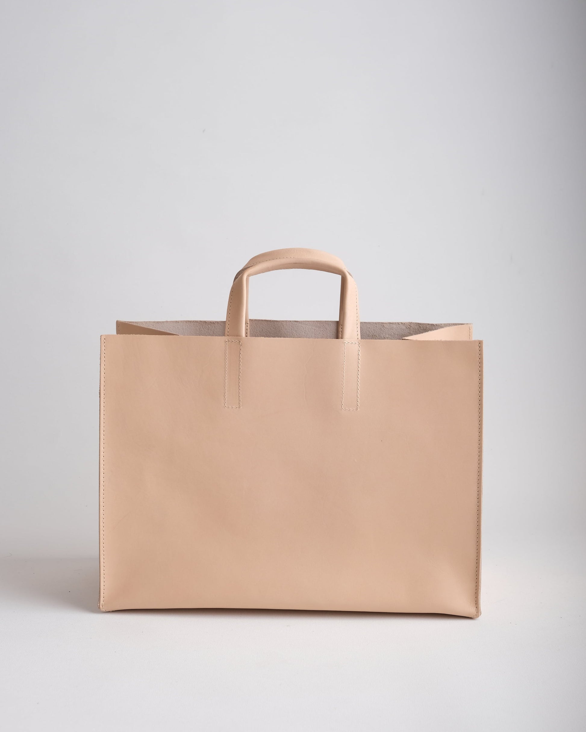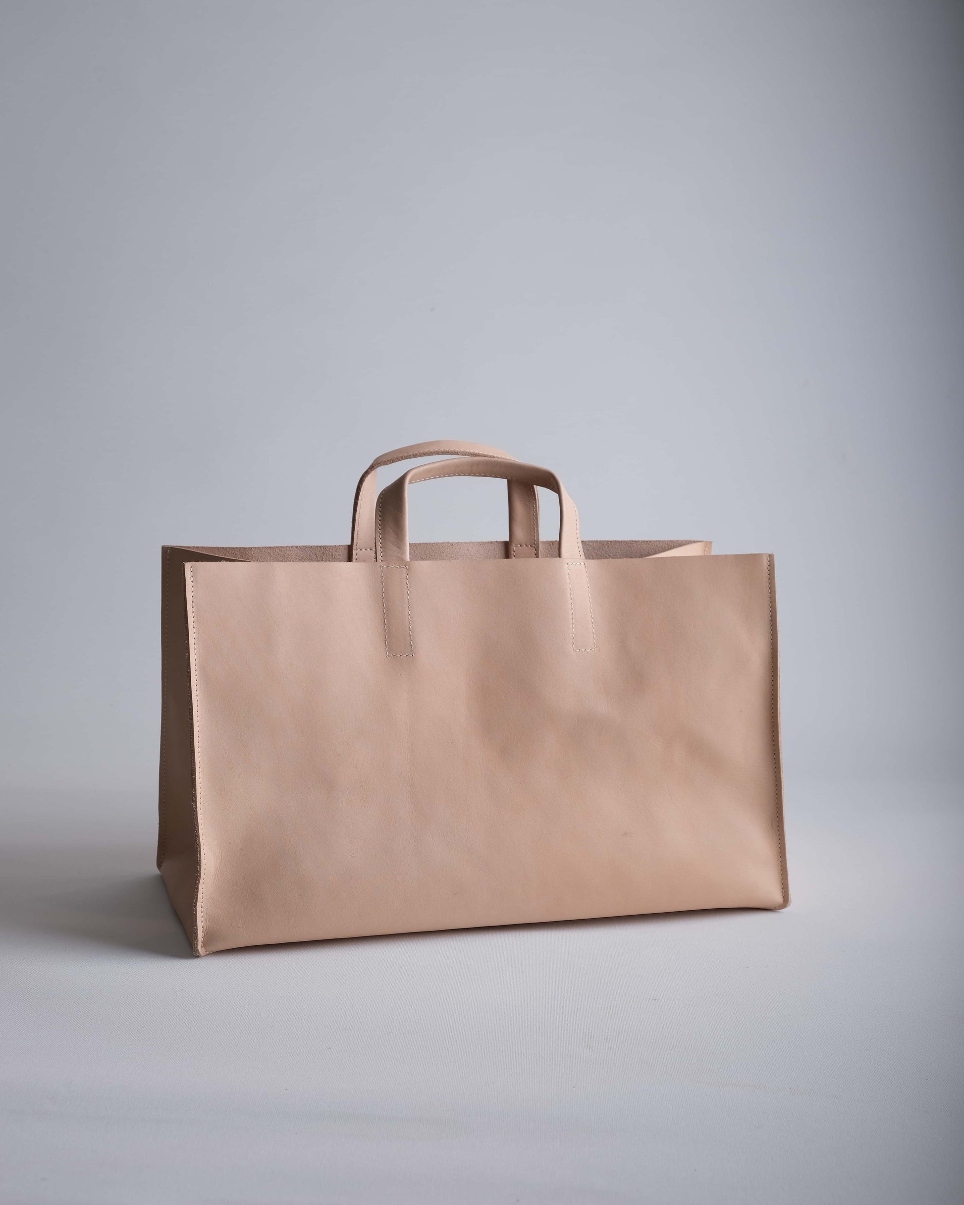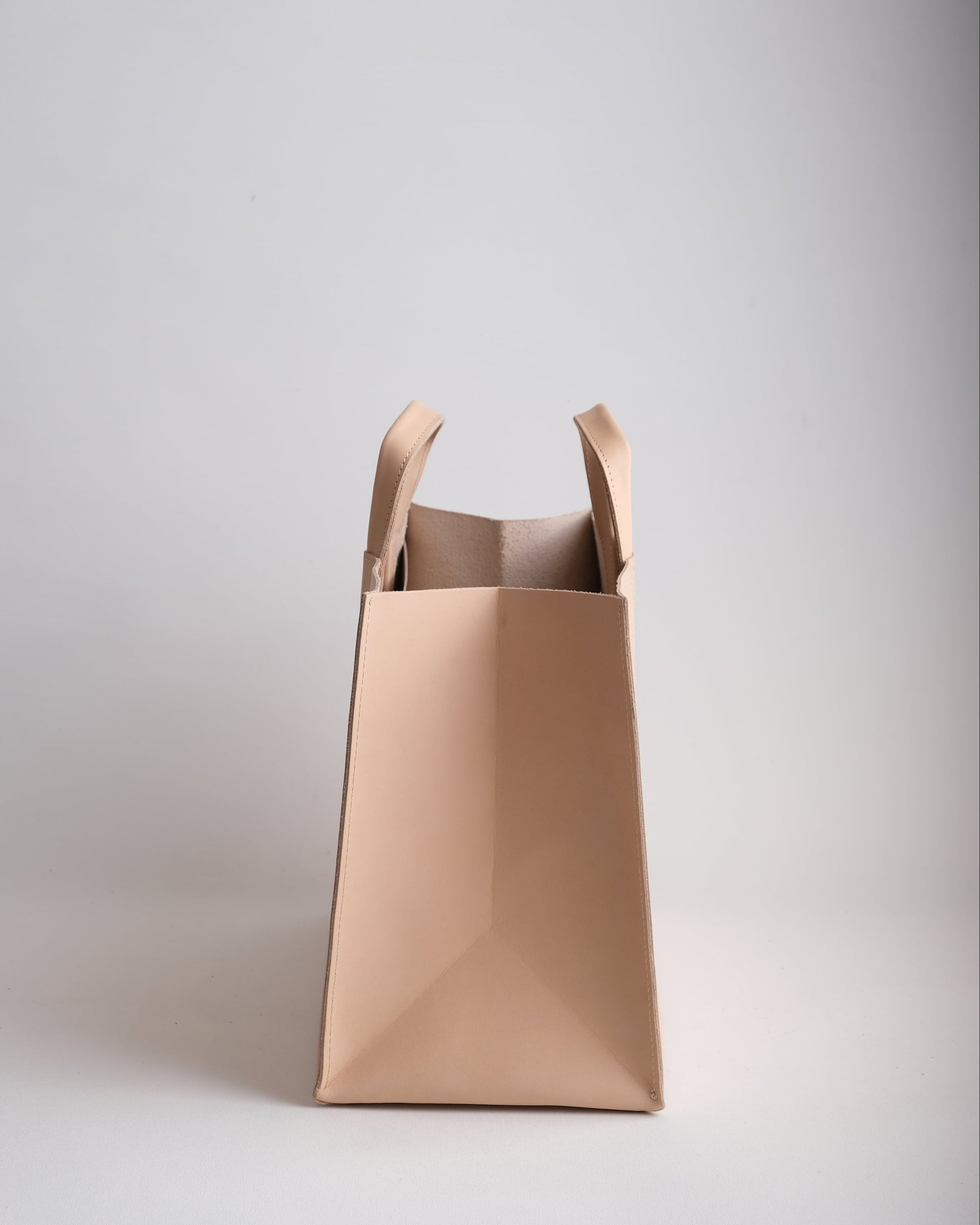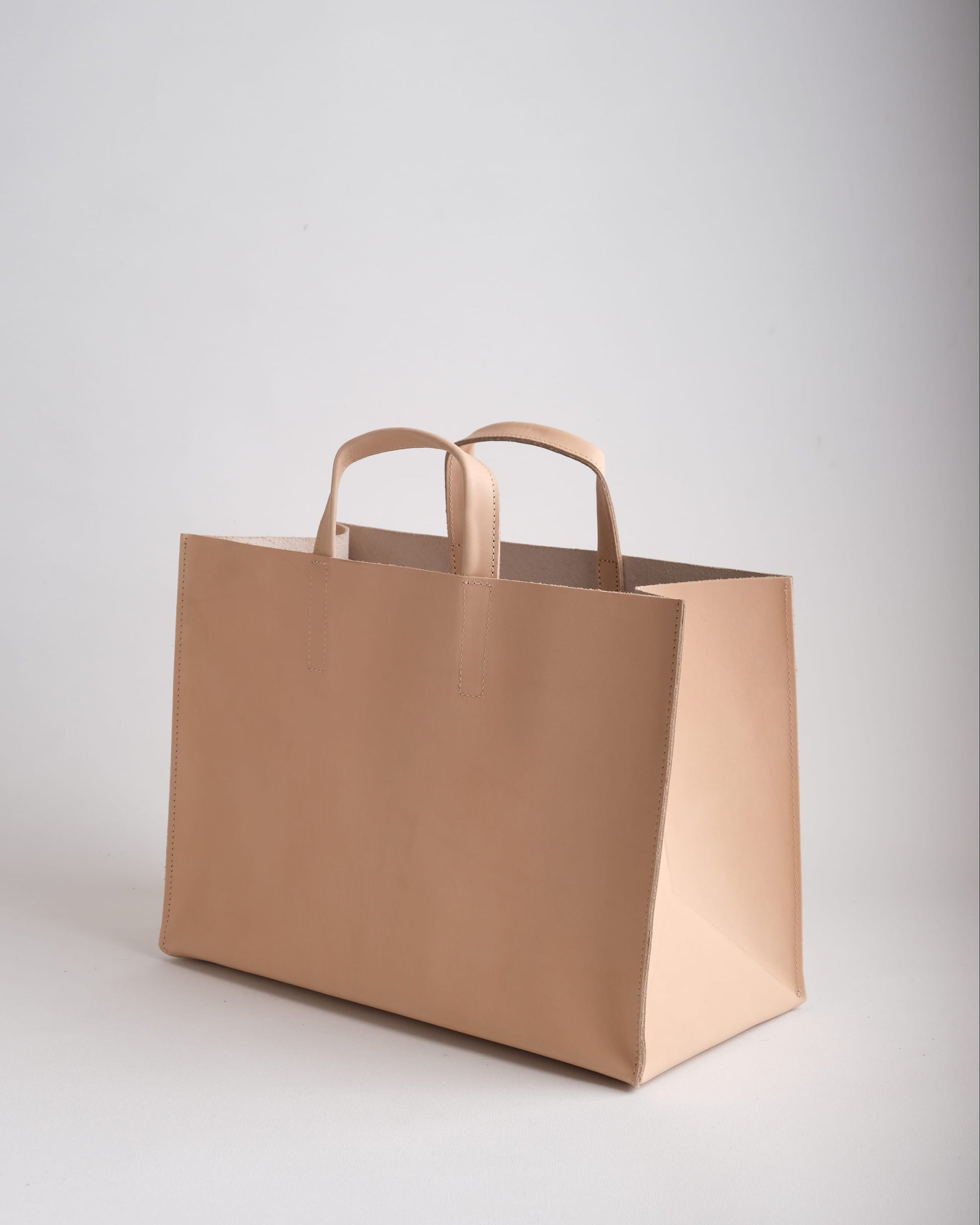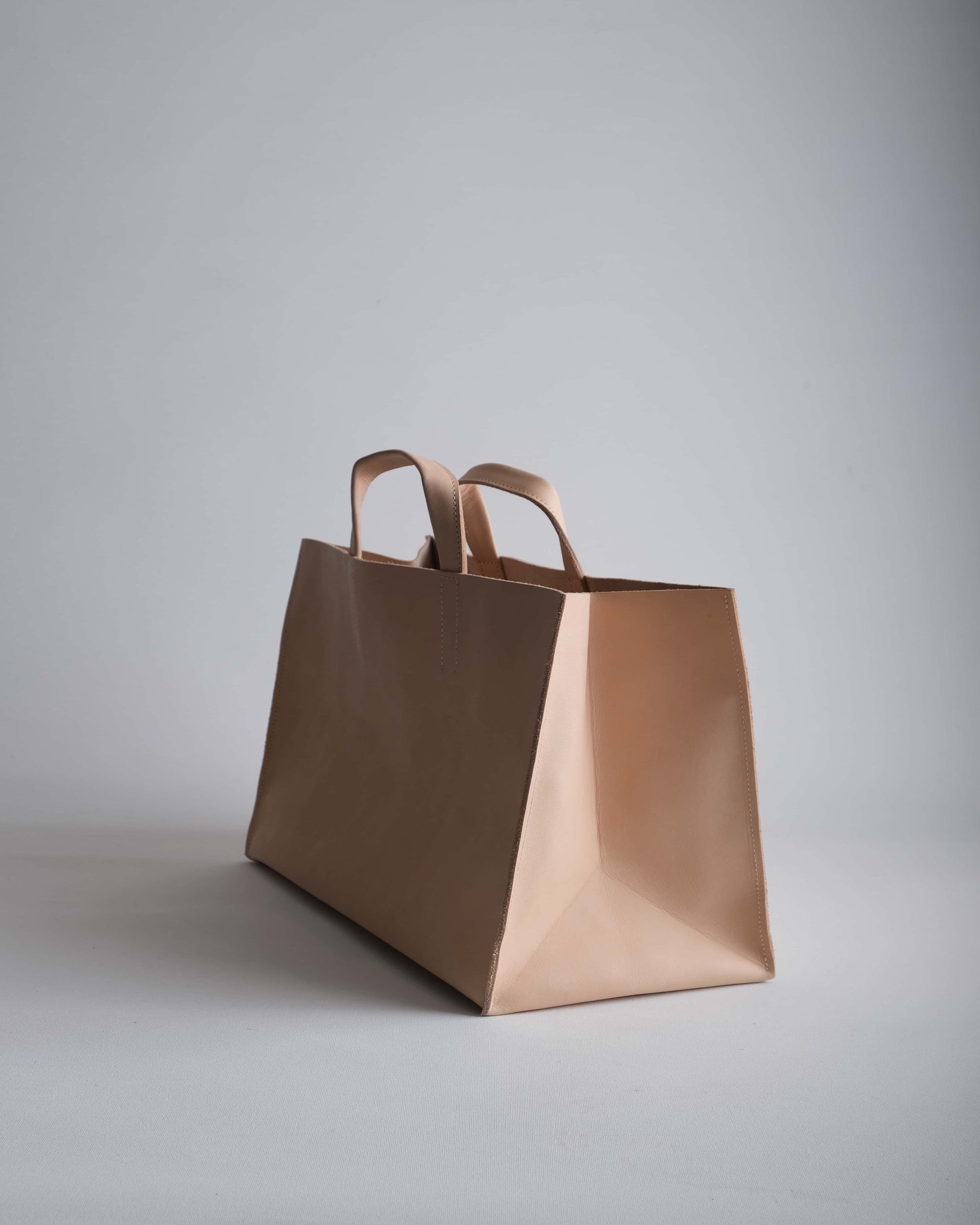 Vår Sushi väska är tillverkad av vegetabilgarvat, ofärgat läder som åldras vackert och utvecklar en unik patina över tid. Formen är inspirerad av den klassiska take away-påsen, med fokus på enkel funktion, tydliga proportioner och ett tidlöst uttryck.